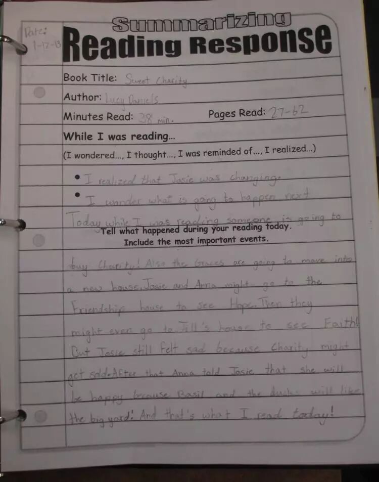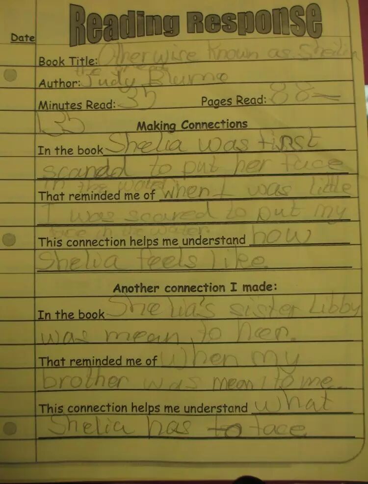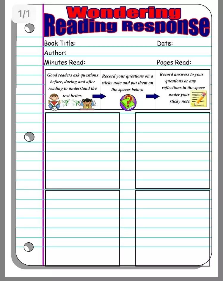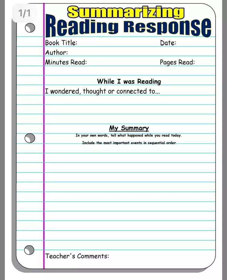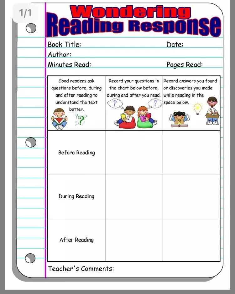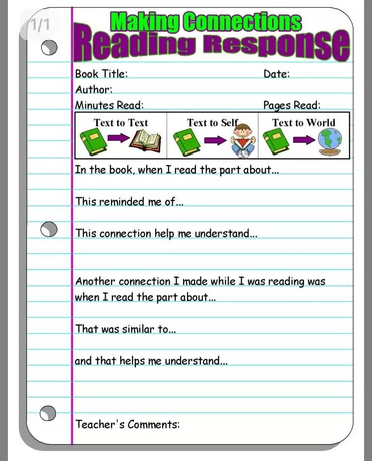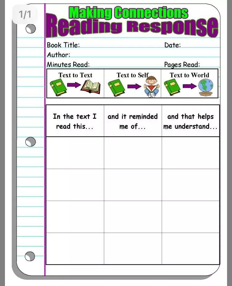 理论篇来自有着27年教学经验的美国小学老师康奈尔的博客上的分享,她让学生带着任务去阅读——每个星期他们都要完成“阅读手册”中的几页“阅读反馈表”,用阅读反馈法进行高效阅读。她每个星期都要使用1到3次这样的表格,学生每次会花上差不多15分钟去完成它们。