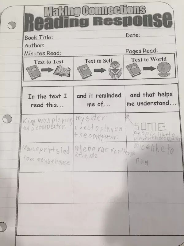 - 其次,反馈表格能让孩子们的注意力更集中。当学生们知道自己在阅读后还有功课需要完成,他们注意力集中的时间将会更长久,这样一来,他们从阅读中学到的东西就越多。