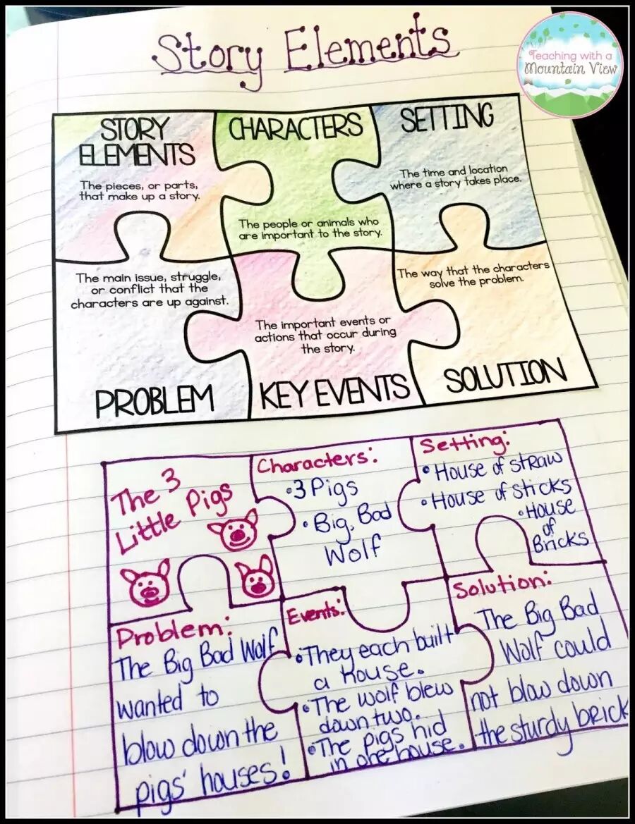 ▼ 下面这个表格,是学生们在学会了总结归纳的技巧后,独立完成的作业,关键是明确的反馈,帮助他们了解如何写出一个强有力的,顺序正确的故事摘要。