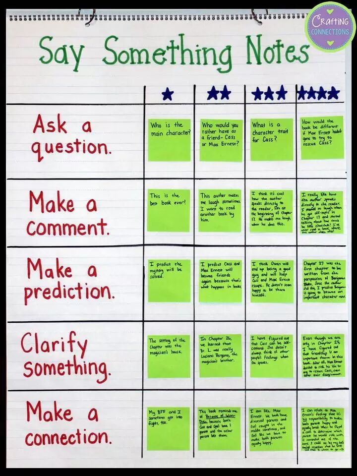 一般来说,我会在黑板上写下一个问题以及相关提示,这样一来,孩子们在开始阅读的时候,就知道在阅读之后,他们需要给出反馈。